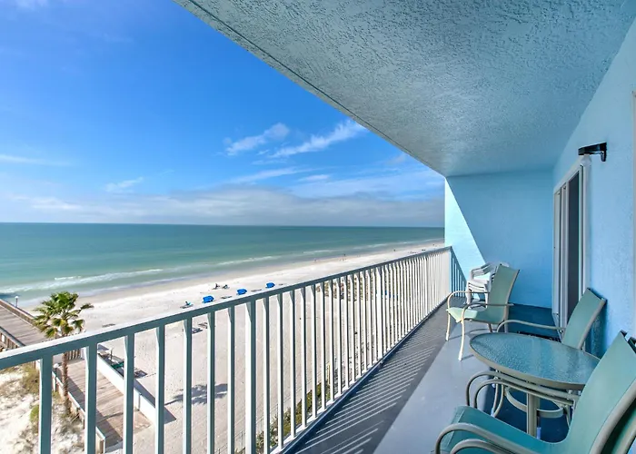 Cette résidence Sand Dollar 503 Clearwater Beach de 137 m² surplombe la mer et se trouve à seulement 5 minutes à pied de l'accès à la plage de Redington Shores. Le parc du millénaire de Boca Ciega est près de l'appartement, tandis que l'arrêt de bus Gulf Boulevard & 186th Avenue est à 150 mètres.